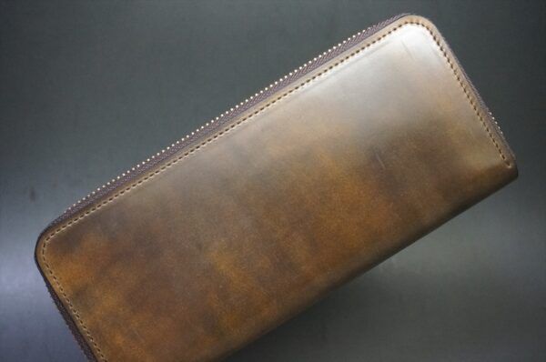 始めて入荷をしたマーブルタイプのホーウィン社製シェルコードバンを使用した長財布が完成しました。
