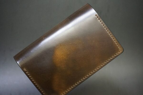 初めて入荷をしたマーブルタイプのホーウィン社製シェルコードバンを使用した名刺入れが完成しました。