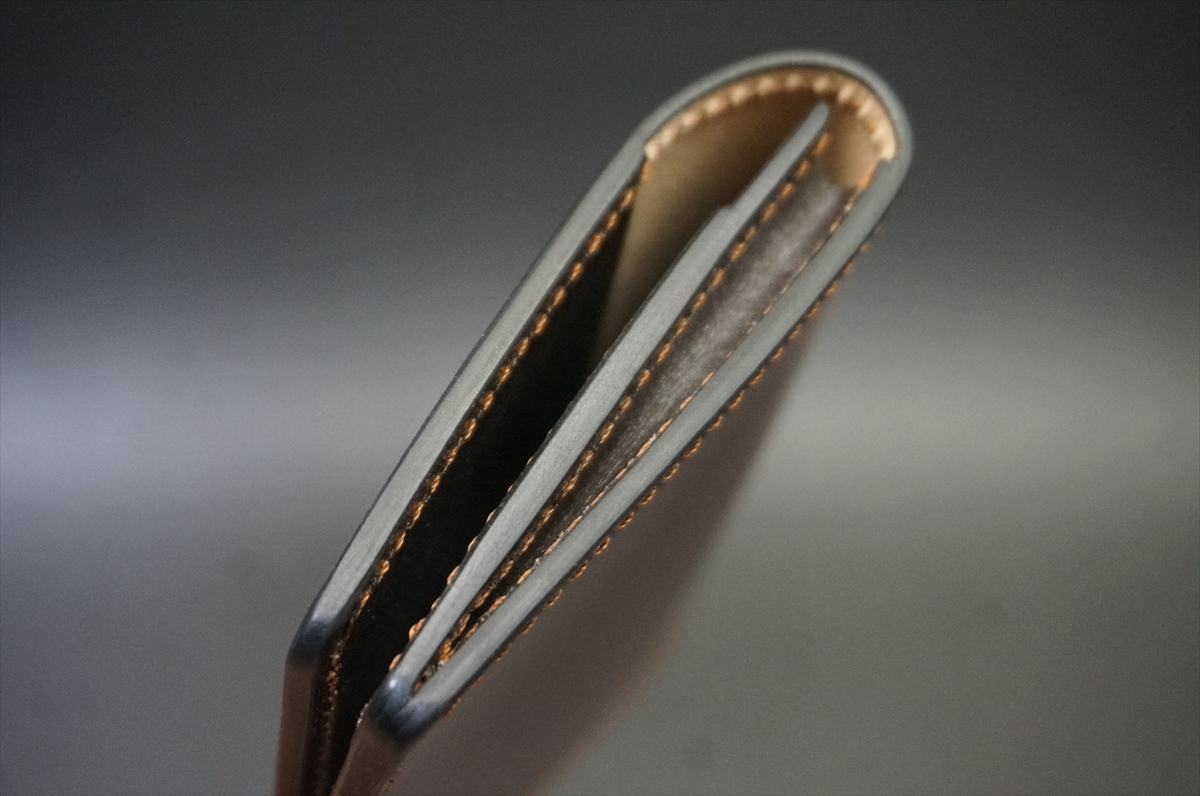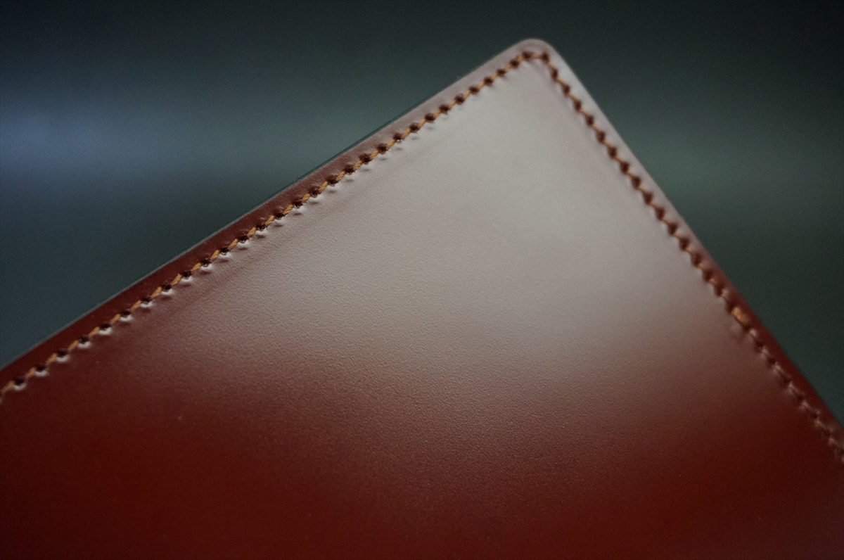 本体外側のコードバンは、日本が世界に誇るコードバンの製造で知られている新喜皮革社製の顔料仕上げコードバン。