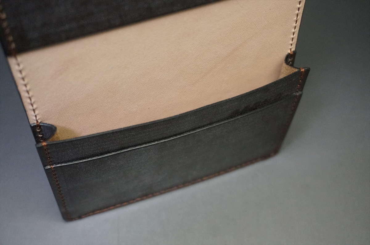 名刺を収納するスペースの手前側と蓋の裏側です。