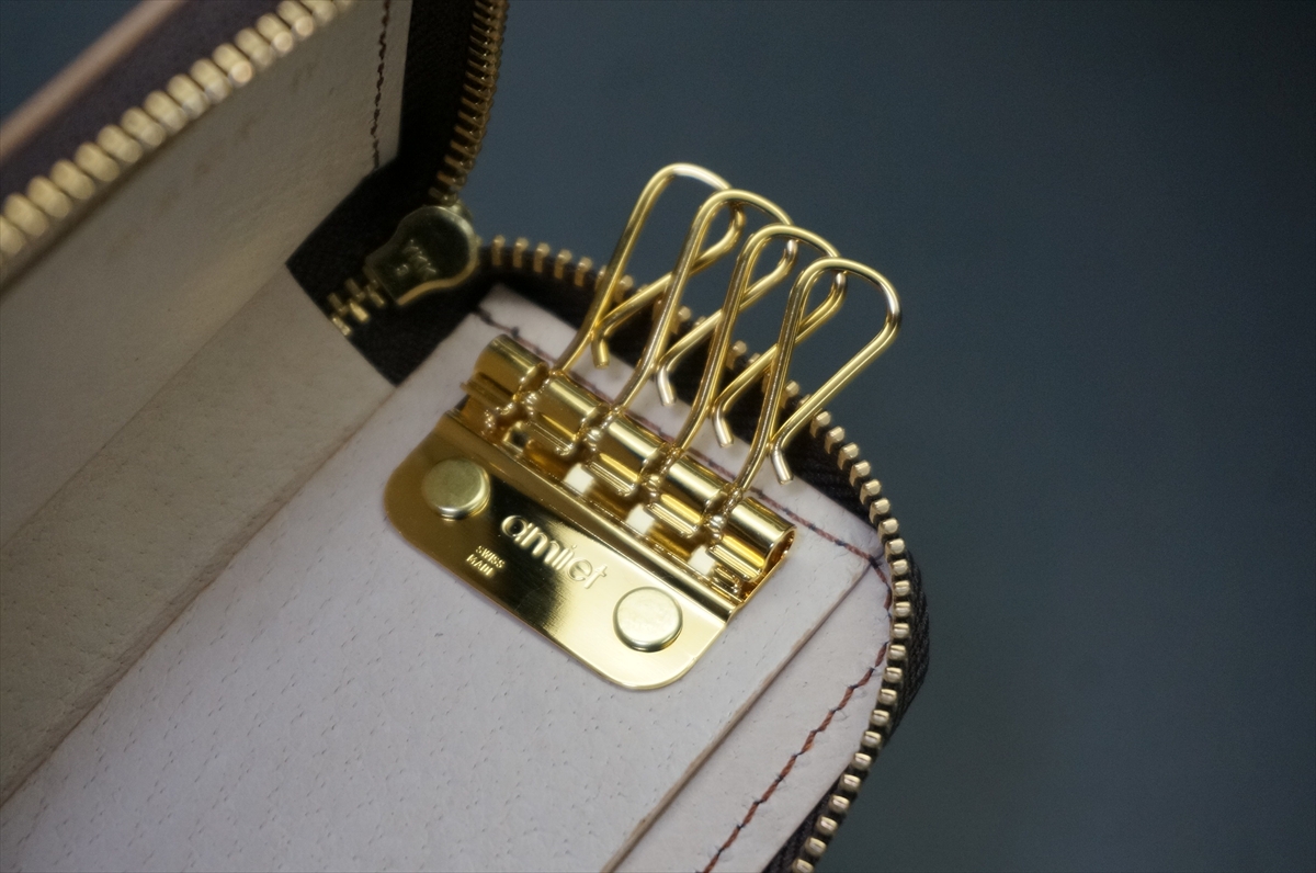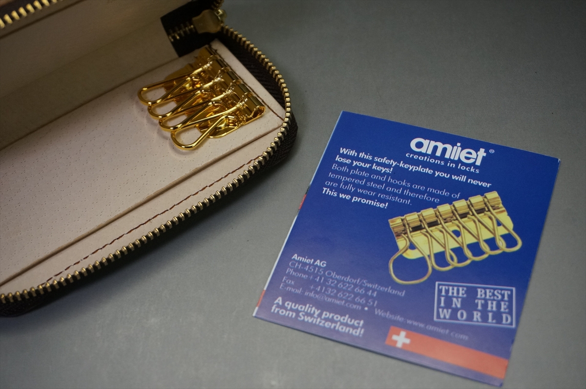 なお、革素材だけではなく、キー金具は今では入手できないスイスの老舗メーカーであるアミエ社の高級金具を使用しています。