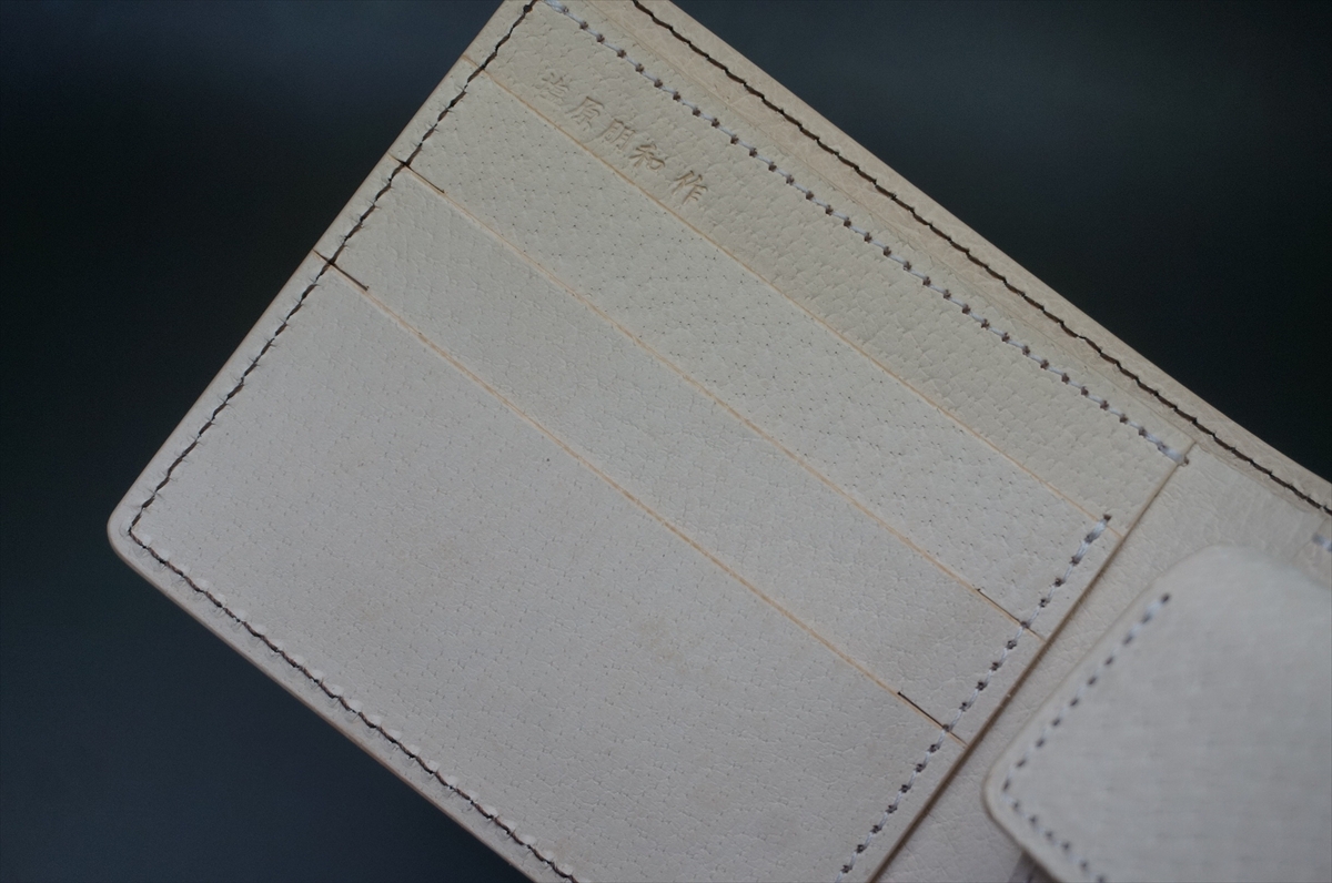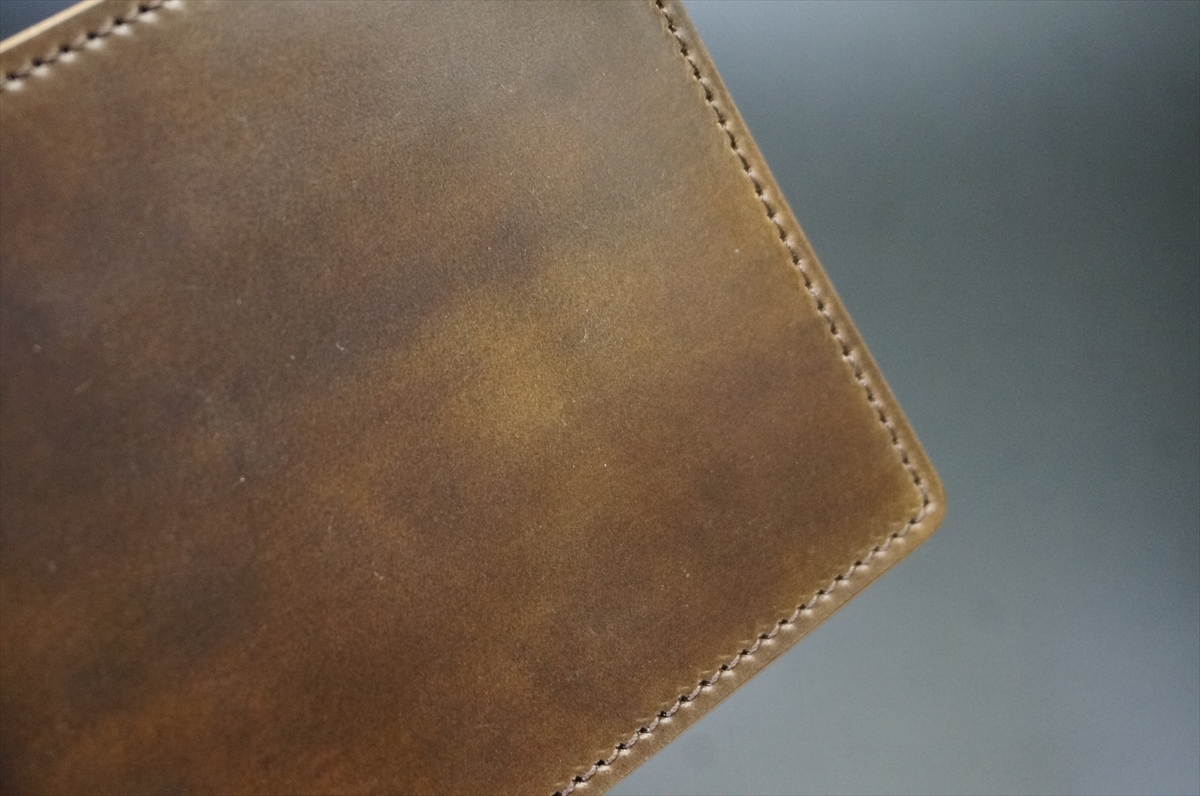 本体外側に、一度は所有してみたい憧れの素材として世界的に有名なホーウィン社製シェルコードバンを使用しました。