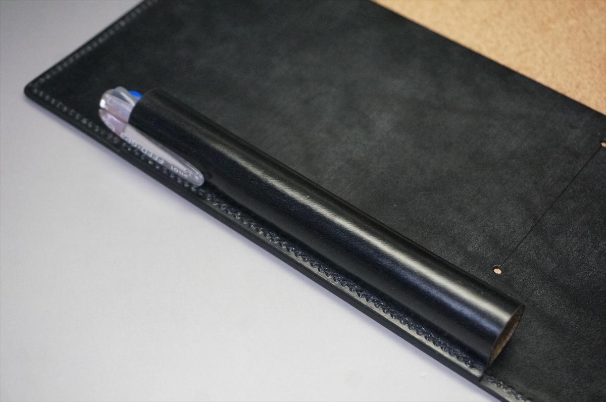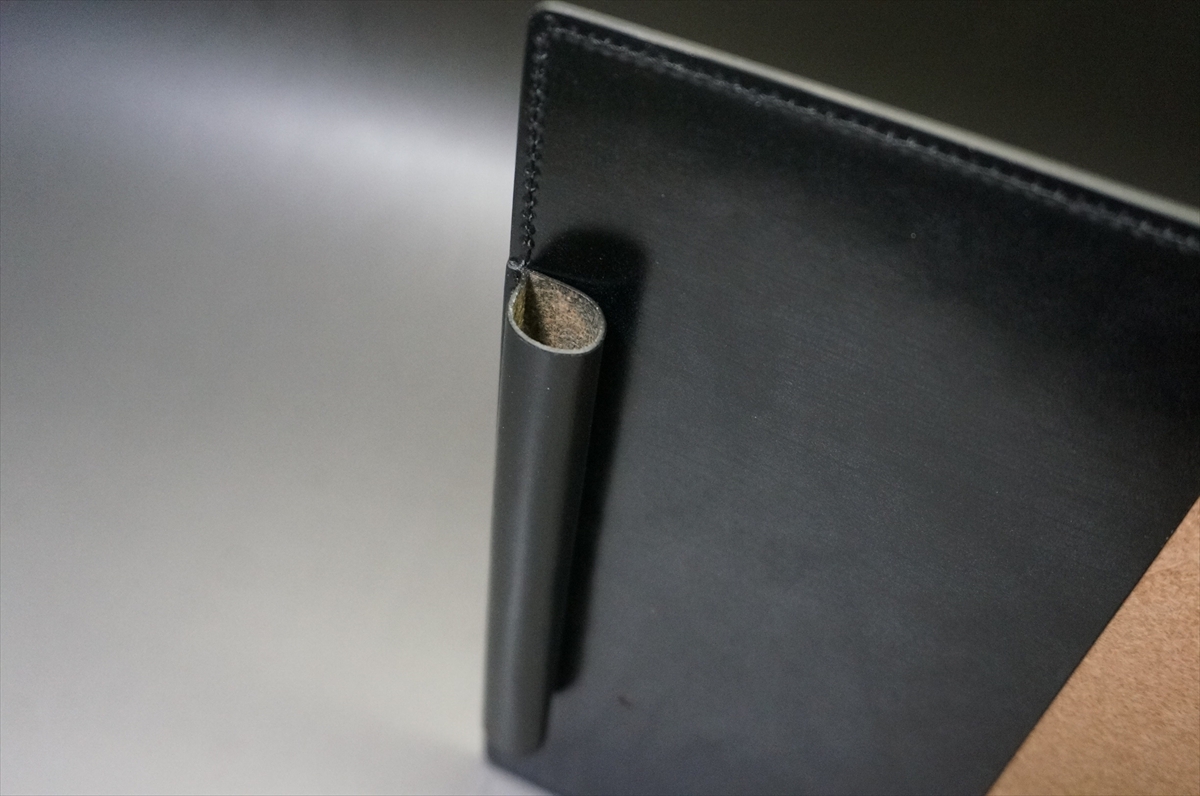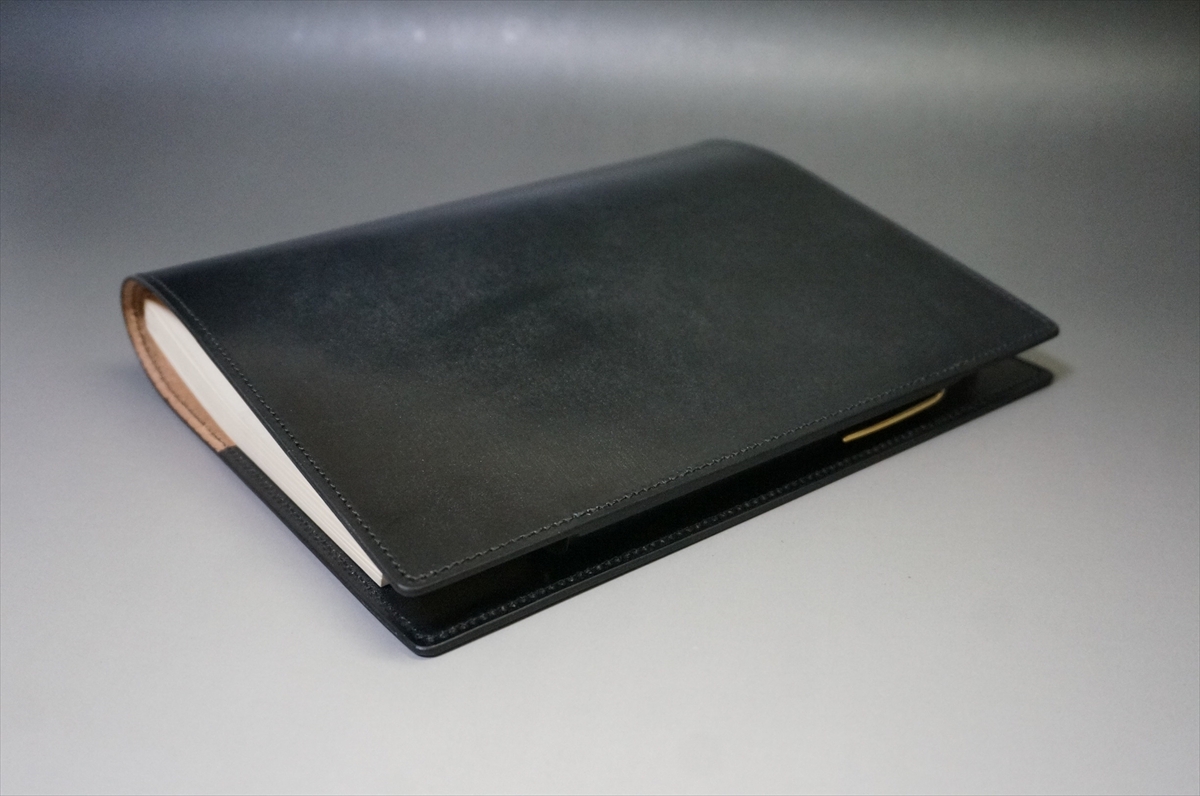 英国の伝統皮革であるセドウィック社製ブライドルレザーをすべての革パーツに使用したペンホルダー付きタイプのA5判手帳カバーです。