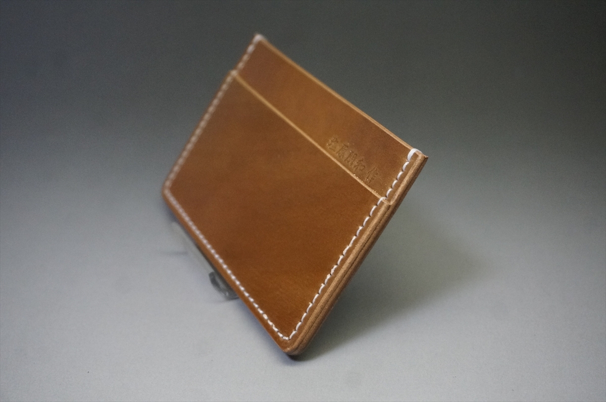 製品は、2か所のポケットがあり手前側に1枚、背面側に2、3枚のカードを収納できるようにデザインしております。